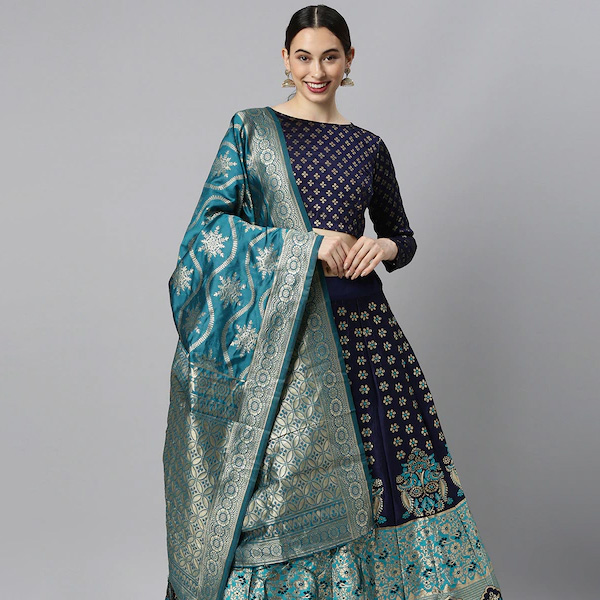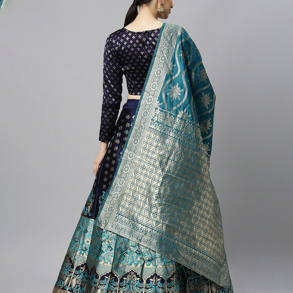 Blue & Green Woven Design Lehenga Choli